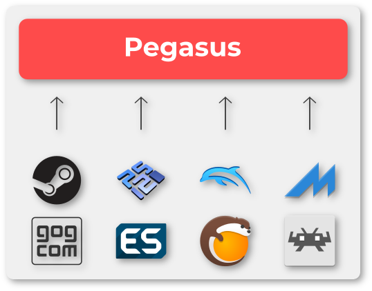 Pegasus is a graphical frontend for browsing your game library (especially retro games) and launching them from one place. It's focusing on customizability, cross platform support (including embedded devices) and high performance.